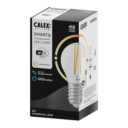 Die kugelförmige Smart-Home Leuchte von Calex erinnert zwar an eine klassische Glühbirne mit E27 Sockel, sie ist jedoch mit der neusten LED-Technik ausgestattet, welche viele Vorteile mit sich bringt. Dazu gehören eine lange Lebensdauer, verbunden mit geringen Ersatz- und Wartungskosten, wodurch eine schnelle Amortisation des Kaufpreises garantiert wird. Zudem sind LEDs umweltfreundlich, denn anders als beispielsweise Halogenlampen beinhalten sie kein Quecksilber. Wechseln Sie Ihre herkömmliche E27 Lampe einfach gegen das smarte LED-Modell von Calex aus!