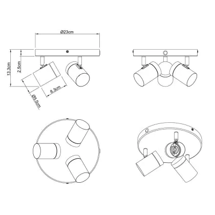 Kompatibel mit 3x GU10: Ausgelegt für drei GU10-Leuchtmittel (max. 35W pro Fassung) – für eine gleichmäßige, zielgerichtete Ausleuchtung.