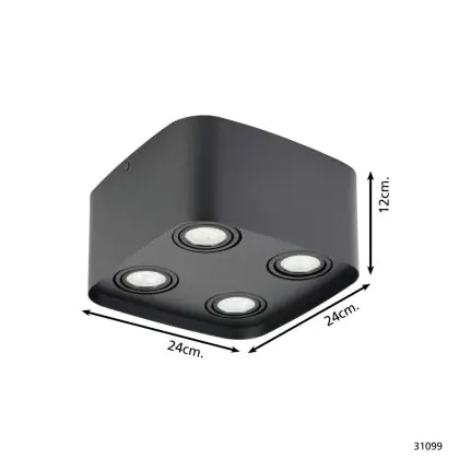 Beschreibung Eglo Decke Spot Arenzano Stahl Schwarz 18.8W 1380lm - 830 Warmweiß | Dimmbar - Geeignet für GU10
