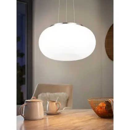 Die Eglo Pendelleuchte Optica Stahl Satin-Nickel | Geeignet für 2x E27 sorgt für eine angenehme Ausleuchtung und punktet durch modernes Design. Diese Leuchte ist speziell zur Montage an der Decke vorgesehen.