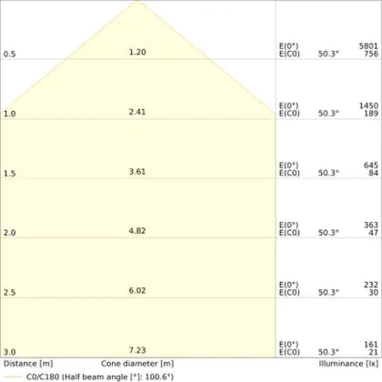 Der LED-Deckenspot kommt mit der Farbtemperatur 3000K - Warmweiß daher. Als Faustregel gilt: Je niedriger der Kelvinwert, desto gemütlicher wirkt das Licht.