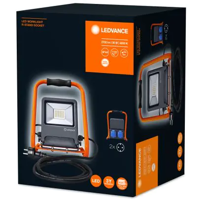 Beschreibung Ledvance LED-Scheinwerfer Baustrahler Dunkel Grau 30W 2700lm 110D - 840 Kaltweiß | IP54 - 2 Power Outlets - Symmetrisch