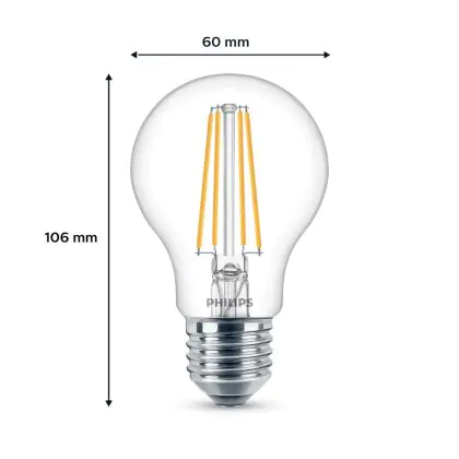 Die Mehrfachpackung 2x Philips Glühbirne LED E27 Birne Fadenlampe Klar 7W 850lm - 840 Kaltweiß ist eine effiziente E27 LED-Lampe mit Retrodesign und der perfekte Ersatz für Ihre konventionellen W Lampen mit E27. Zudem strahlt sie Licht in der Farbtemperatur 4000K - Kaltweiß aus und punktet durch eine lange Lebensdauer.