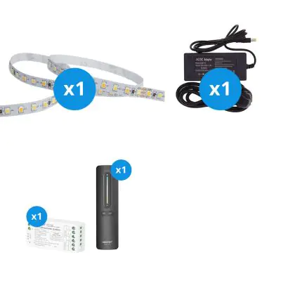 Der große Vorteil dieses Komplettsets ist, dass Sie alles Zubehör haben, das Sie benötigen, um die besten Lichtakzente für Ihr Zuhause oder Ihre Geschäftsräume zu setzen. Sie müssen nicht nach dem richtigen Zubehör suchen, sondern nur alle Elemente miteinander verbinden. Anschließend stecken Sie den Stecker in eine normale Steckdose in Ihrem Haus. Alles dazu erfahren Sie in unserem Installationsblog. Dieses Set enthält: