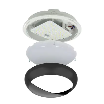 Die Noxion LED-Wand- und Deckenleuchte Pro V2 Weiß 12/16/20W 2400lm - 830-840-865 CCT | 325mm - IP65 - Bewegungs- und Lichtsensor - Not 3H + Augenlid Ring Schwarz ist eine Feuchtraumleuchte. Sie strahlt Licht in der Farbtemperatur aus und punktet durch eine lange Lebensdauer. Diese Leuchte ist speziell zur Verwendung in Feuchträumen (Keller, Waschräume, etc.) vorgesehen.