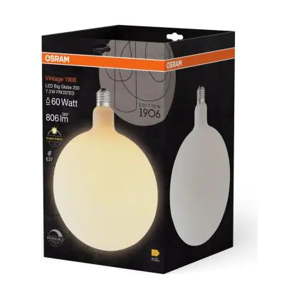 Die Osram Vintage 1906 LED E27 Kugel Fadenlampe Matt 7.3W 806lm - 827 Extra Warmweiß | Dimmbar - Ersatz Für 60W ist eine effiziente E27 LED-Lampe mit Retrodesign und der perfekte Ersatz für Ihre konventionellen 60W Lampen mit E27. Zudem strahlt sie Licht in der Farbtemperatur 2700K - Extra Warmweiß aus und punktet durch eine lange Lebensdauer.