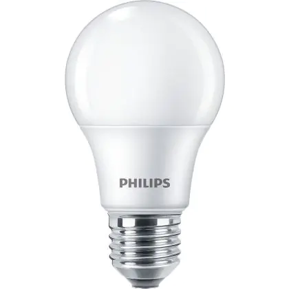 Die Philips Corepro LED Glühbirne E27 Birne Matt 8W 806lm - 830 Warmweiß | Ersatz für 60W ist eine effiziente E27 LED-Lampe und der perfekte Ersatz für Ihre konventionellen 60W Lampen mit E27-Sockel. Zudem strahlt sie Licht in der Farbtemperatur 3000K - Warmweiß aus und punktet durch eine lange Lebensdauer.