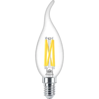 Beschreibung Philips MASTER LED E14 Gebogen-tip Kerze Fadenlampe Klar 3.4W 470lm - 922-927 Dim To Warm | Höchste Farbwiedergabe - Dimmbar - Ersatz Für 40W