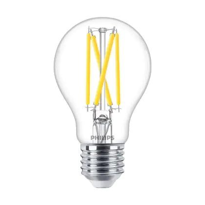 Die Philips Master LED E27 Birne Fadenlampe Klar 5.9W 806lm - 922-927 Dim To Warm | Höchste Farbwiedergabe - Dimmbar - Ersatz Für 60W ist eine effiziente E27 LED-Lampe mit Retrodesign und der perfekte Ersatz für Ihre konventionellen 60W Lampen mit E27. Zudem strahlt sie Licht in der Farbtemperatur 2200K - 2700K Dim To Warm aus und punktet durch eine lange Lebensdauer.