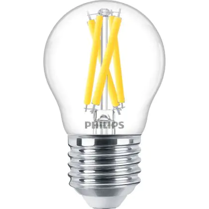 Die Philips MASTER LED E27 Kugel Fadenlampe Klar 5.9W 806lm - 922-927 Dim To Warm | Höchste Farbwiedergabe - Dimmbar - Ersatz Für 60W ist eine effiziente E27 LED-Lampe mit Retrodesign und der perfekte Ersatz für Ihre konventionellen 60W Lampen mit E27. Zudem strahlt sie Licht in der Farbtemperatur 2200K - 2700K Dim To Warm aus und punktet durch eine lange Lebensdauer.