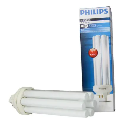 Philips PL-T TOP 4P besitzen eine 4 polige Buchse. Diese Leuchtstofflampen bieten eine optimierte Lichtleistung für den Einsatz in unterschiedlichen Temperaturbereichen. Mit ihrem GX24q-4 Sockel sind Philips PL-T TOP 42W 830 4P leicht in die passenden Leuchten zu installieren.